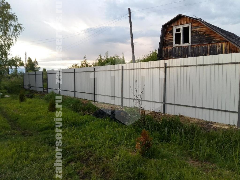 Забор из профнастила с утрамбовкой щебнем 34 метра